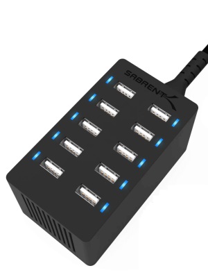 9. Bộ sạc nhanh USB 10 cổng bằng nhôm Sabrent Premium 60 Watt (12 Amp)