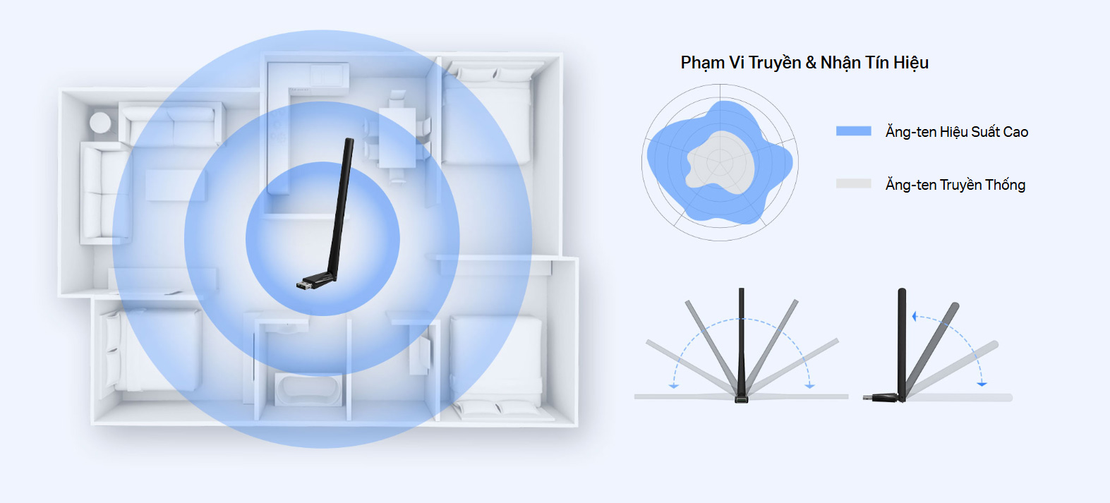 Xoay và điều chỉnh ăng-ten đa hướng để cải thiện trải nghiệm người dùng và hiệu suất trong nhiều môi trường khác nhau.