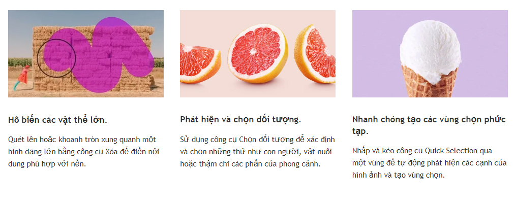 Xóa các vật thể lớn, chẳng hạn như các tòa nhà, chỉ trong vài lần nhấp chuột. Công cụ loại bỏ sử dụng công nghệ thông minh để tự động tô nền đồng thời bảo quản thông tin vật thể và độ sâu trong các nền phức tạp, tạo trải nghiệm chỉnh sửa mượt mà.