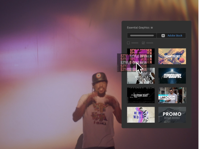 Thiết kế nhanh chóng các tiêu đề, phụ đề và hình đồ họa có chất lượng chuyên nghiệp, đẹp mắt bằng các mẫu. Tùy chỉnh chúng để phù hợp với không khí của video ngay bên trong Premiere Pro.