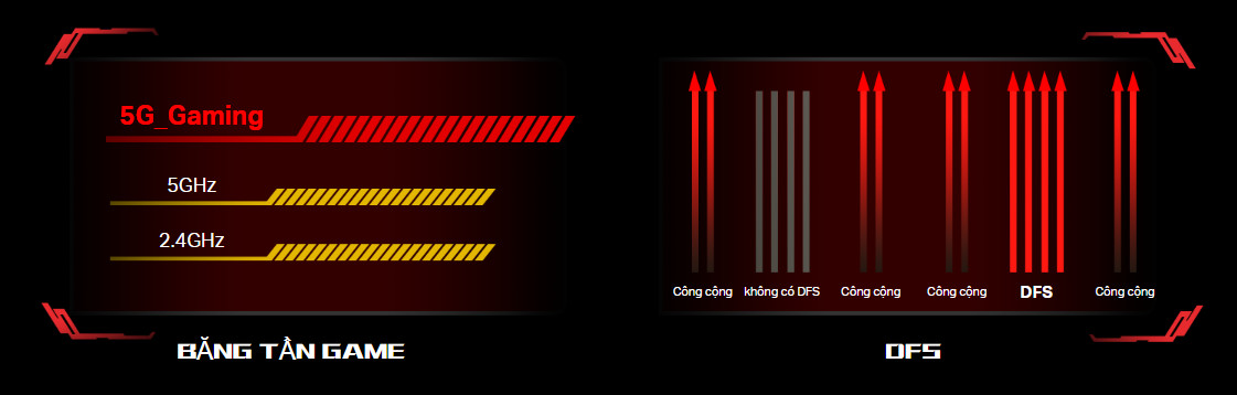 DFS tự động mở rộng kênh khả dụng, cho bạn tốt độ cao hơn và trải nghiệm game mượt mà hơn.