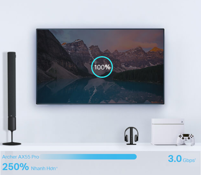 - Wi-Fi AX3000 Băng Tần Kép Nhanh Hơn: Tốc độ lên đến 3.0 Gbps (2402 Mbps + 574 Mbps) cho trải nghiệm duyệt web, phát trực tuyến và tải xuống mượt mà cùng lúc.†