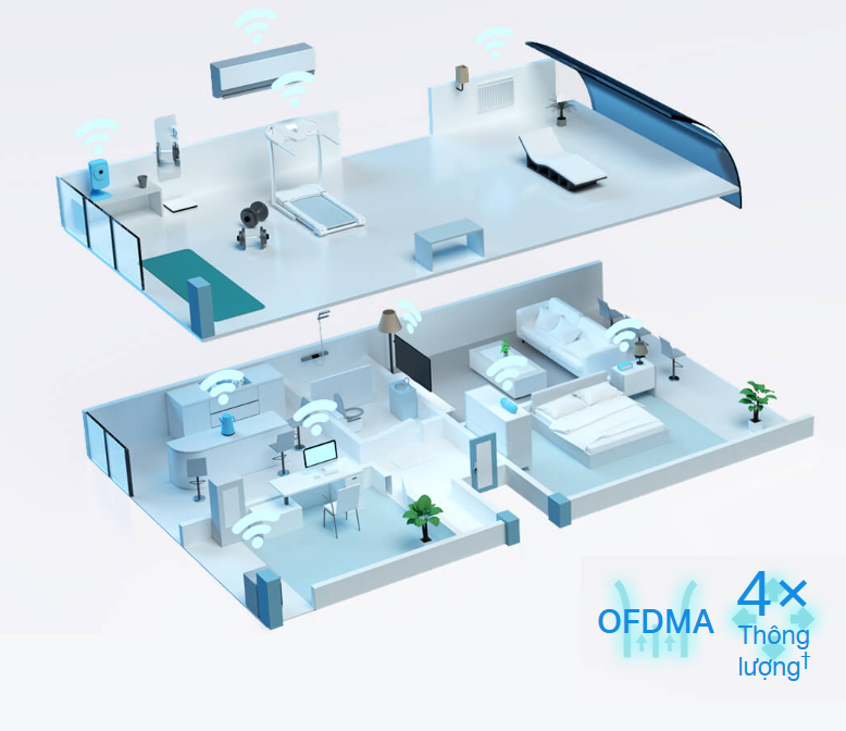 - Kết Nối Nhiều Thiết Bị Hơn: Công nghệ OFDMA tăng gấp 4 lần khả năng truyền tải đồng thời đến nhiều thiết bị.‡