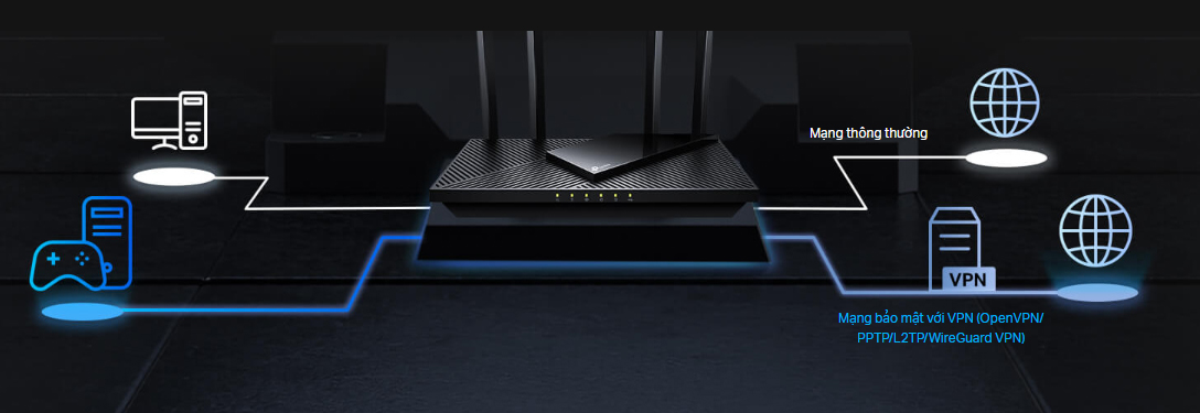 Router có thể chạy đồng thời VPN và kết nối Internet thông thường, mang lại sự bảo mật và linh hoạt tối đa.