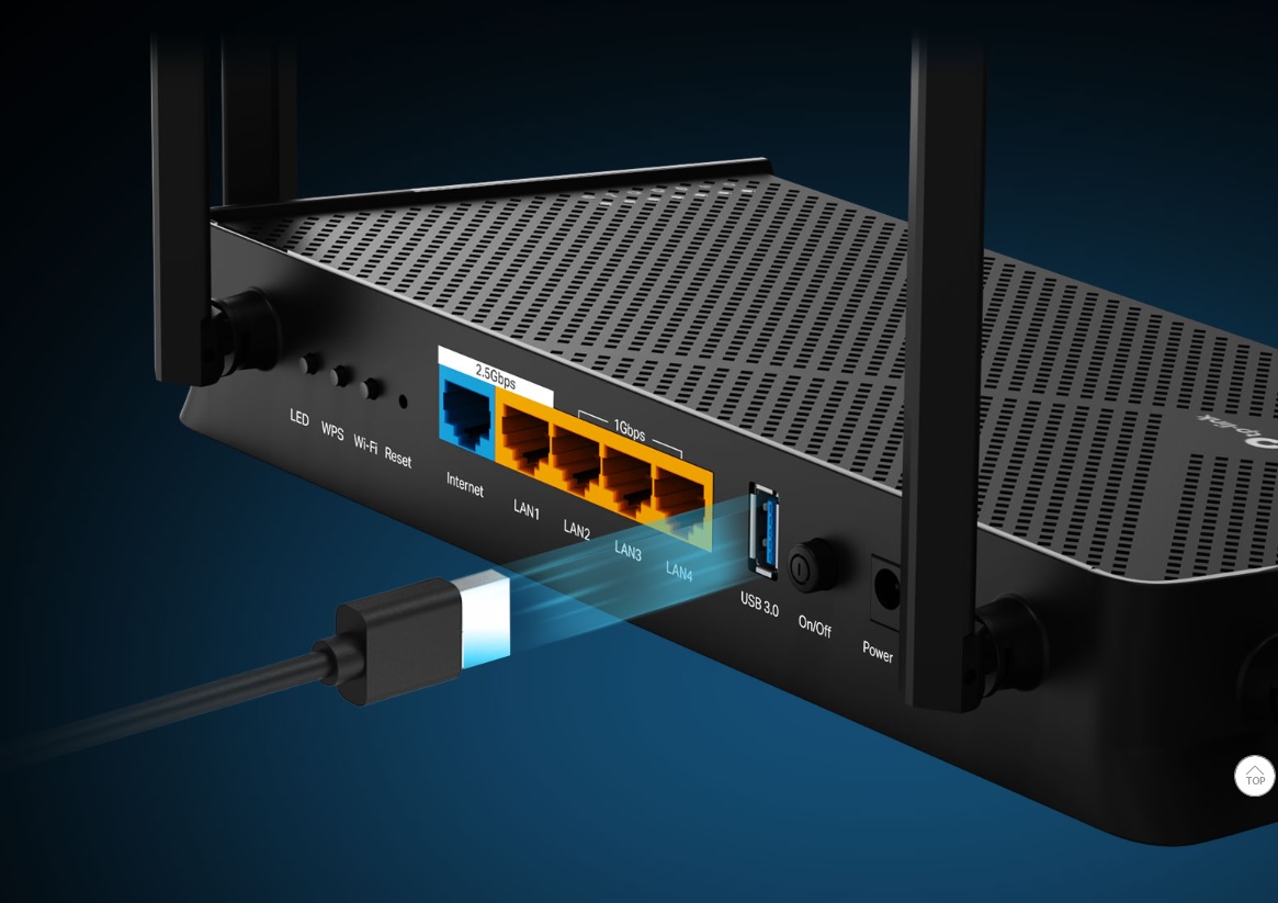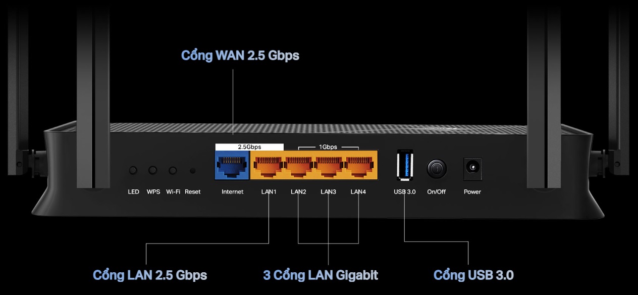 - 2 cổng 2.5G: Kết nối các thiết bị của bạn với tương lai với cổng WAN và LAN 2.5 Gbps, cho phép truyền dữ liệu cực nhanh.
