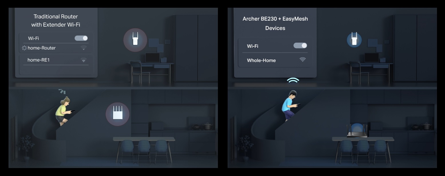 Archer BE230 là Router Wi-Fi 7 tương thích với EasyMesh. Nếu bạn có bất kỳ vùng chết nào ở nhà, chỉ cần thêm một bộ định tuyến/bộ mở rộng phạm vi EasyMesh để tạo thêm Wi-Fi Mesh multi-gigabit cho toàn bộ ngôi nhà. Không cần khó chịu vì kết nối thiếu ổn định nữa.◇