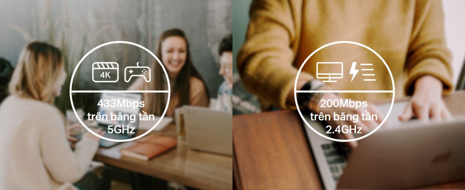 WiFi tốc độ cao - Tốc độ lên tới 600Mbps với 200Mbps trên băng tần 2.4GHz và 433 Mbps trên băng tần 5GHz, nâng thiết bị của bạn lên tốc độ Wi-Fi AC cao hơn.
