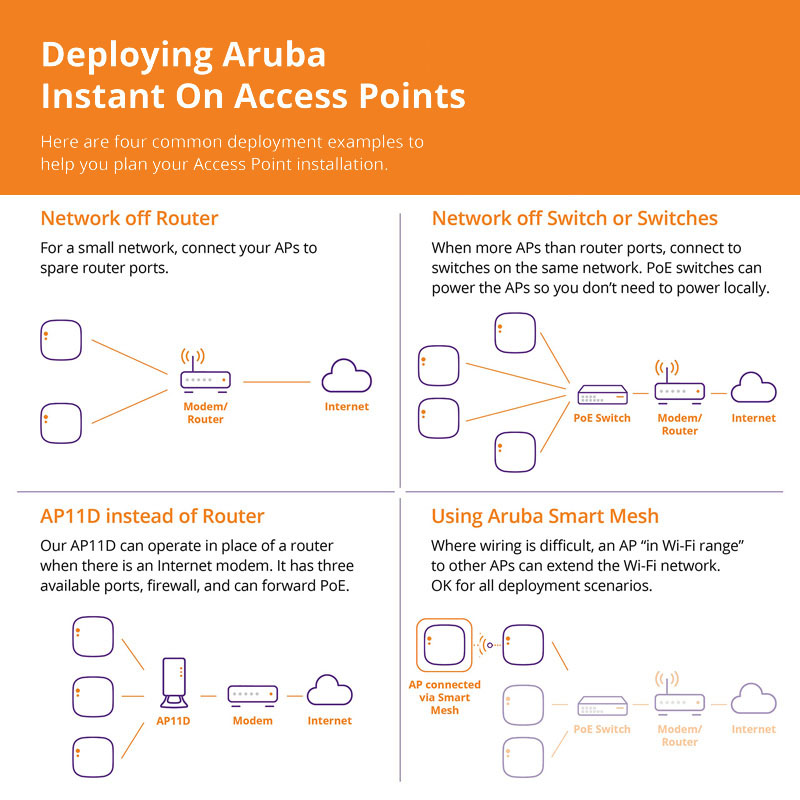 Tùy theo nhu cầu của người dùng Aruba Instant ON AP11 (R2W96A) có thể ứng dụng ở nhiều môi trường khác nhau