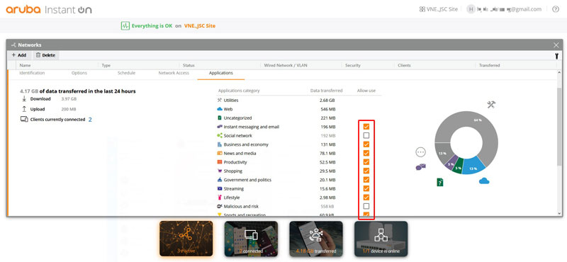 Giao diện trực quan của Aruba Instant On trên PC