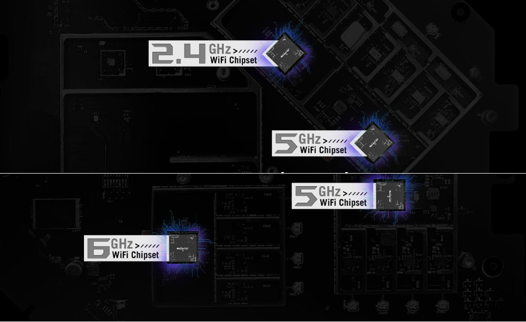 Với bốn dải tần số có sẵn, bạn có thể dành mỗi dải cho các thiết bị khác nhau để có kết nối WiFi nhanh hơn và mượt hơn. Nó cũng mang đến cho bạn nhiều tùy chọn linh hoạt hơn để kết nối các định tuyến tương thích với AiMesh của ASUS như các điểm mạng mesh nếu bạn muốn tạo hệ thống mesh cho toàn bộ ngôi nhà.