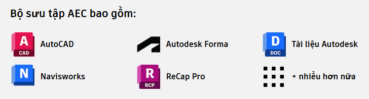 Với các công cụ thiết kế CAD, BIM và đám mây, các kiến trúc sư, kỹ sư và chuyên gia xây dựng tin tưởng vào Bộ sưu tập AEC để tích hợp phần mềm chuyên nghiệp một cách hiệu quả về mặt chi phí. Tiết kiệm hàng ngàn đô la mỗi năm khi mua Revit + AutoCAD trong Bộ sưu tập AEC so với mua lẻ.