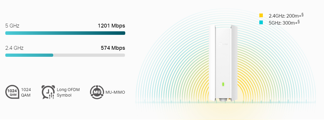 Được hỗ trợ bởi công nghệ WiFi 6 mới nhất, AP cung cấp tốc độ lên tới 1,8 Gbps. *