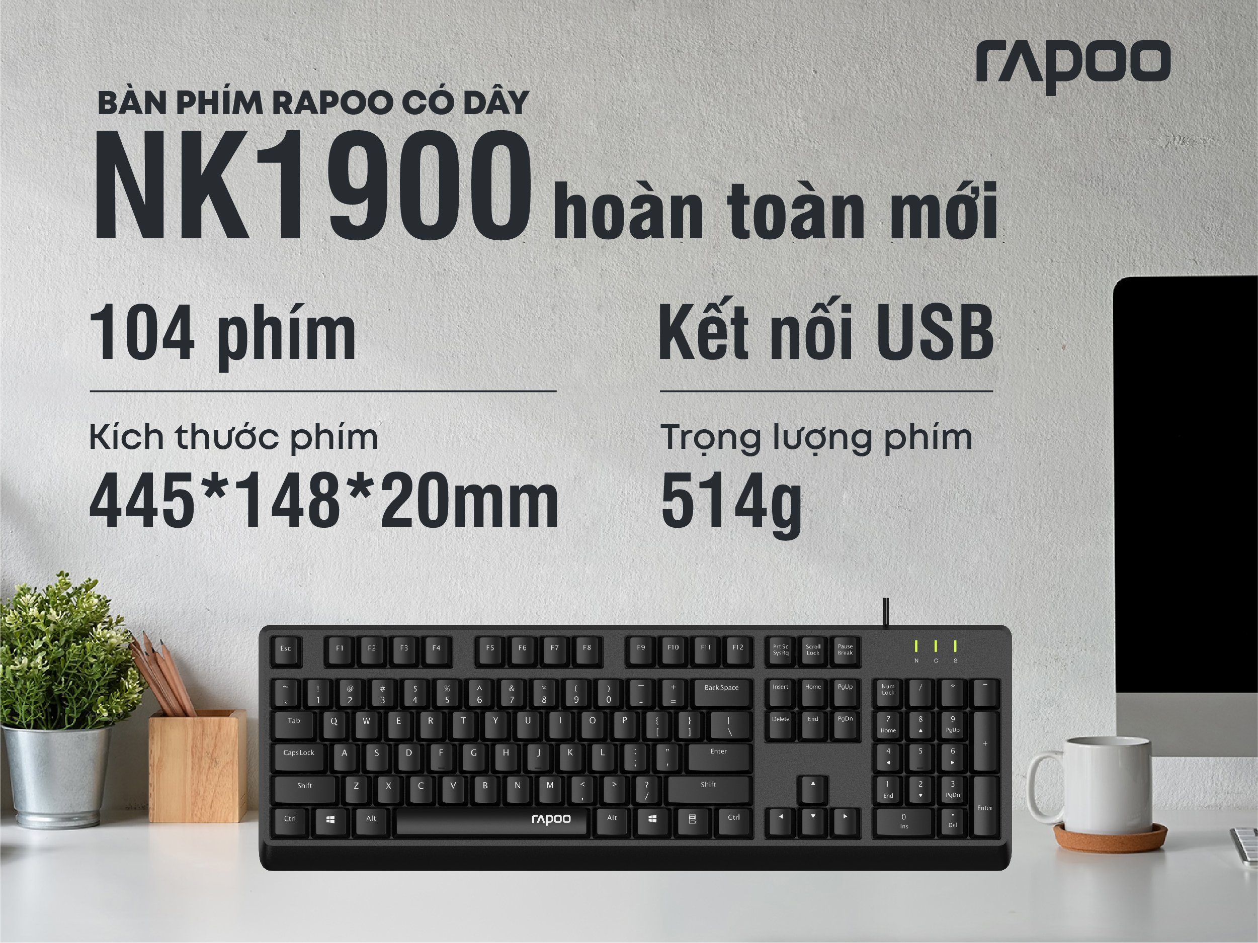 Bàn phím có dây Rapoo NK1900 – Tăng hiệu suất công việc