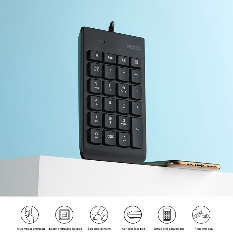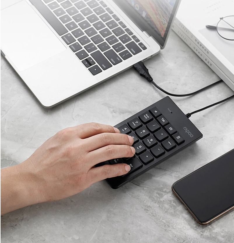 Rapoo K10 được thiết kế để bổ trợ tính năng nhập liệu phím số, dành cho những người sử dụng laptop không có bàn phím số, hay những chiếc bàn phím với layout Tenkeyless