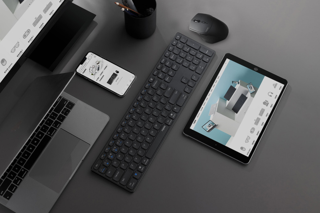 Sử dụng Rapoo E9550G cho môi trường làm việc với laptop, máy tính bảng hay máy tính bàn của bạn giúp trải nghiệm kết nối và chuyển đổi giữa các thiết bị một cách liền mạch, nhanh nhạy chỉ một chạm trên đáy chuột và tổ hợp phím trên bàn phím.