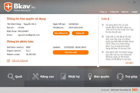 Sử dụng Bkav Pro có bản quyền bạn được tự động cập nhật liên tục các bản update từ máy chủ Bkav, đảm bảo phần mềm luôn có đầy đủ sức mạnh và tính năng mới nhất