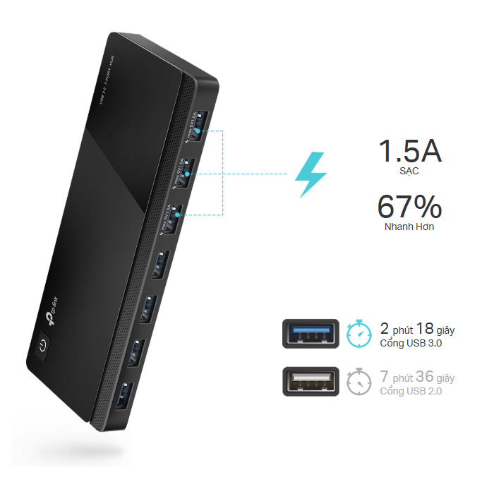 UH700 cung cấp đầu ra lên đến 5V/1.5A, giúp sạc nhanh hơn 67% và tiết kiệm đến 30% thời gian sạc*.