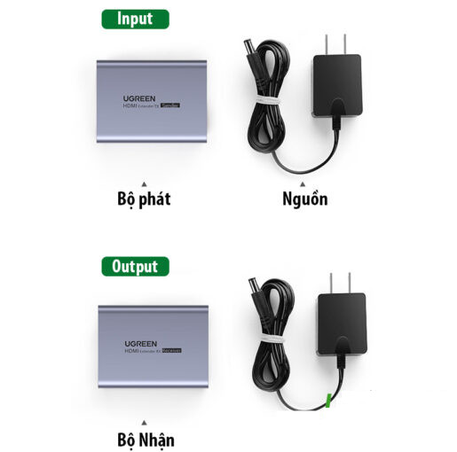 Bộ kéo dài HDMI 70M qua cáp mạng Ugreen 20519 bao gồm một đầu phát (Sender) và một đầu nhận (Receiver), với tín hiệu HDMI Input/Output hỗ trợ FullHD 1080P@60Hz nối ghép với nhau bằng đoạn cáp mạng cat5e/6 dài tối đa lên đến 70m. Giải pháp thay thế cáp HDMI bằng cáp mạng này giúp bạn hoàn toàn có thể yên tâm khi đi các hệ thống dây âm tường, đi dây cự ly xa, và giảm chi phí thi công, bảo trì…