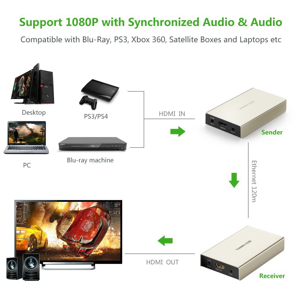 Bộ chuyển đổi HDMI ra dây mạng Cat5e/6 bộ phát Ugreen 40280 là một giải pháp lý tưởng để thi công các công trình cần kết nối truyền tải tín hiệu hdmi full hd 1080p từ máy tính, laptop, android tivi box, và các đầu phát camera ... v.v ra nhiều màn hình ở cự ly rất xa thông qua cáp mạng cat5e/cat6 mà vẩn đảm bảo hình ảnh sắc nét được truyền tải ở tốc độ ổn định. Ngoài ra, vì tính hiệu được chuyển đổi từ hdmi sang lan ở đoạn giữa giúp các kỹ sư thoải mái thiết kế thi công ở những nơi cần đi dây âm tường mà không gây khó khăn cho việc bảo trì, hoặc thay thế sau này.