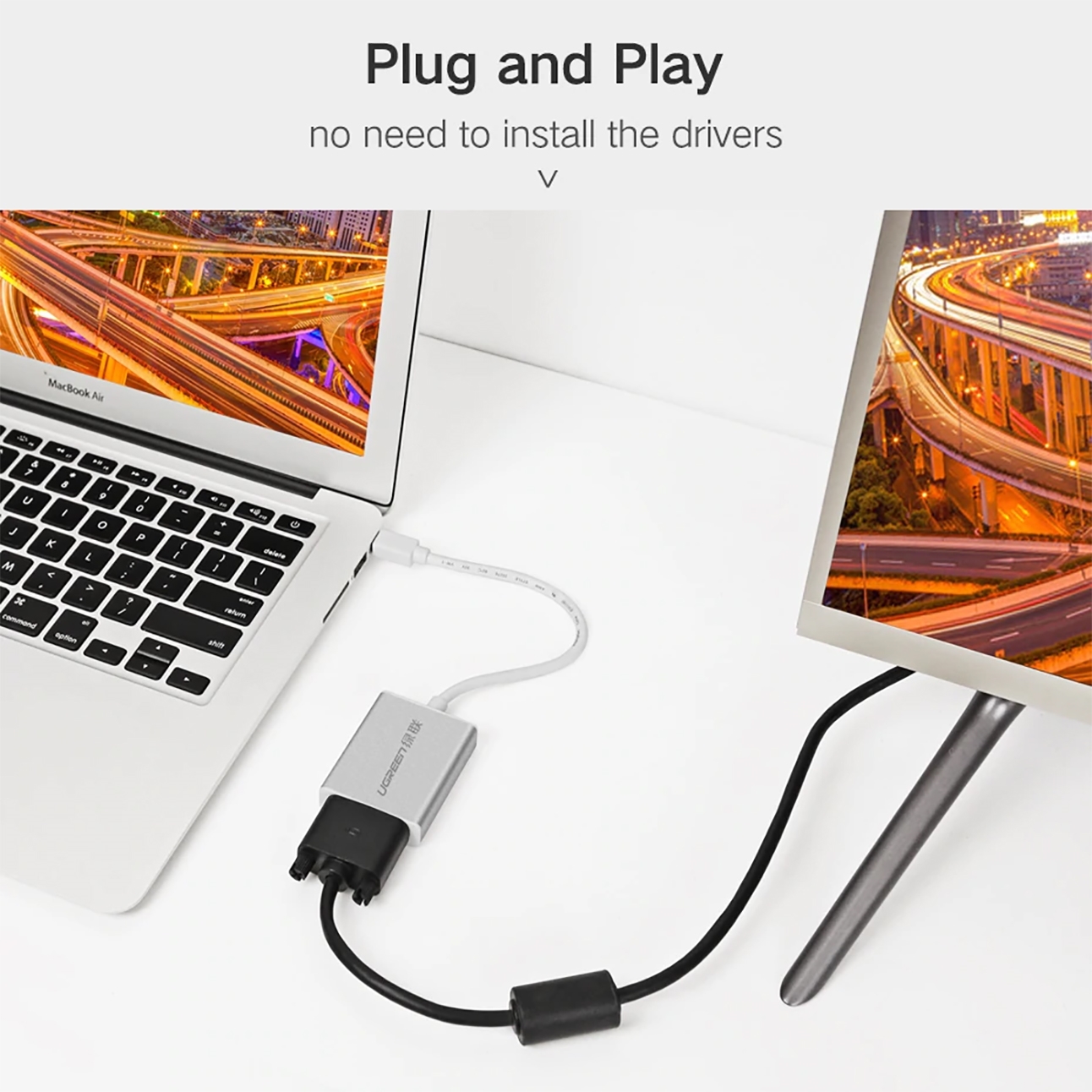Bộ chuyển đổi mini Displayport sang VGA Ugreen 10403 hỗ trợ công nghệ Plug & Play (cắm là nhận) không cần cài đặt driver, kêt hợp với thiết kế nhỏ gọn mang đến sự thuận tiện tối đa cho khách hàng.