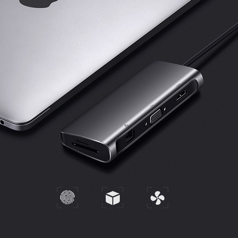 Bộ chuyển đổi USB-C sang 3*USB 3.0+HDMI+RJ45+SD&TF+3.5mm Ugreen 80133 là thiết bị chuyển đổi đa năng cao cấp chuyên dùng cho các thiết bị hỗ trợ cổng USB Type C đời mới như Macbook, Lenovo, HP… với các tính năng chính bao gồm: