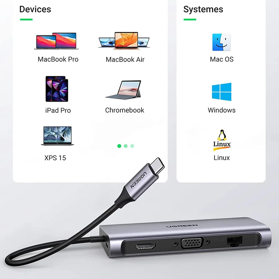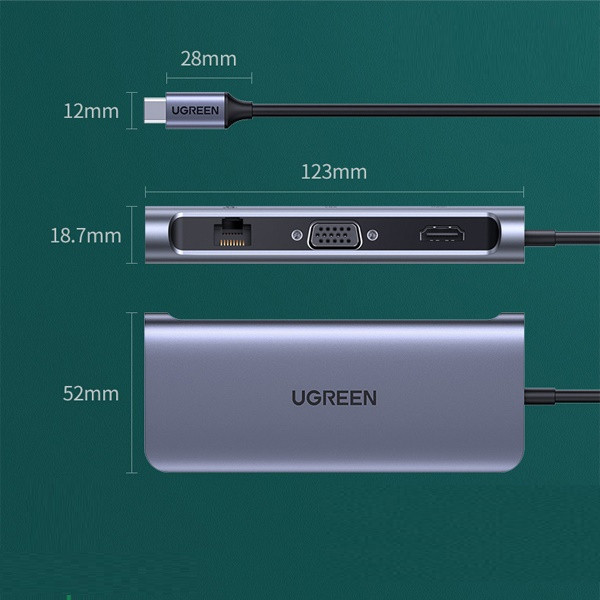 Bộ chuyển đổi USB-C Ugreen được sản xuất bởi thương hiệu quốc tế Ugreen với thiết kế nhỏ gọn tinh tế, chất liệu cao cấp bao gồm vỏ nhôm sang trọng, lõi cáp bằng đồng nguyên chất và các chipset xử lý cao cấp, mang đến độ bền vượt trội và khả năng kết nối tối ưu nhất. Ngoài ra, nhà sản xuất còn trang bị thêm cổng USB-C giúp kết nối sạc cho máy tính, laptop của bạn ngay khi đang xử dụng thiết bị này.