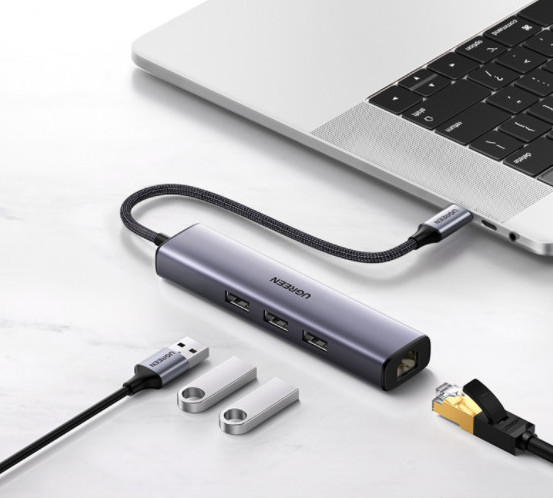 - Bộ chia USB Type C ra 3 cổng USB 3.0 + Lan Ugreen 20932 là phụ kiện cao cấp giúp mở rộng thêm 3 cổng USB 3.0 cho các thiết bị như máy tính, macbook, điện thoại, máy tính bảng đời mới sử dụng cổng USB TYPE C.