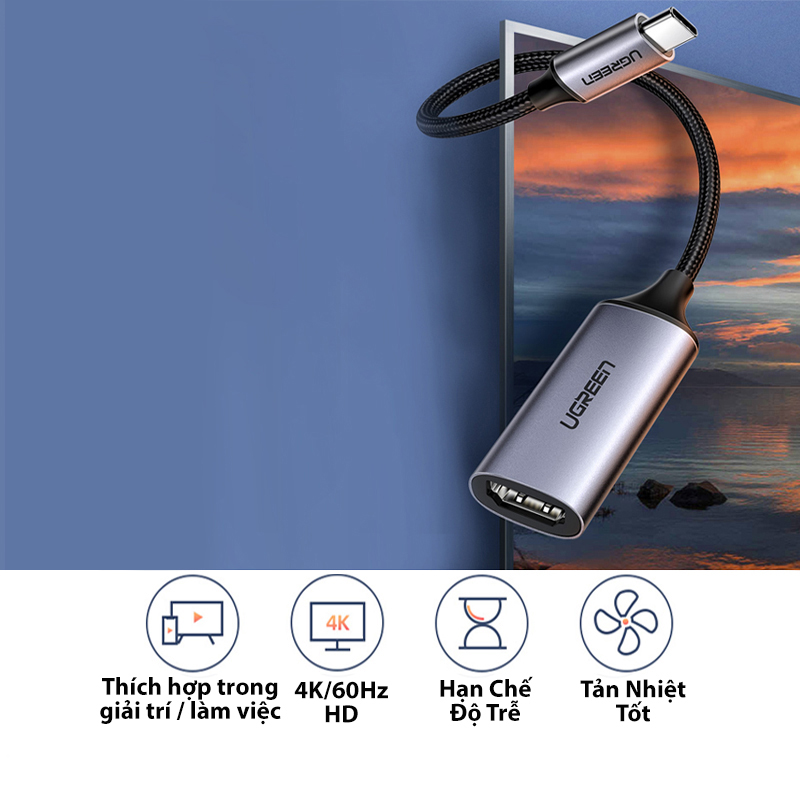 Ugreen 70444 là cáp chuyển đổi USB-C sang HDMI 2.0 mới nhất hỗ trợ độ phân giải 4K/60Hz sắc nét. Giúp bạn có những giây phút trải nghiệm hình ảnh, video sống động, sắc nét trên màn hình máy tính, tivi HD cỡ lớn.