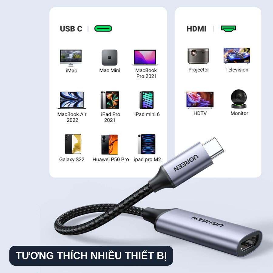 Bộ chuyển đổi USB-C sang HDMI Ugreen 70444 tương thích rộng rãi với các thiết bị hỗ trợ Thunderbolt3 và Samsung DEX