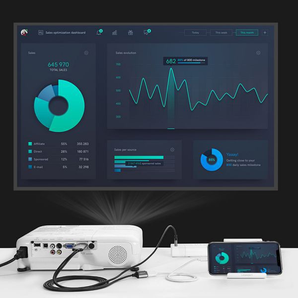 Bộ chuyển đổi USB sang HDMI màu xám Ugreen 50291 cho phép kết hợp với sợi cáp sạc cho thiết bị di động iOS và Android của bạn đễ truyền tải tín hiệu hình ảnh, âm thanh đến màn hình, tivi, máy chiếu với độ phân giải sống động và âm thanh trung thực, thoải mái trải nghiệm các chương trình giải trí, xem ảnh, chơi game trên màn hình lớn hơn một cách dễ dàng và nhanh chóng, chỉ với thao tác cắm là nhận mà không cần cài đặt thêm các ứng dụng bên thứ 3, giúp đảm bảo sự thuận tiện và hiệu năng hoạt động cho thiết bị của bạn.