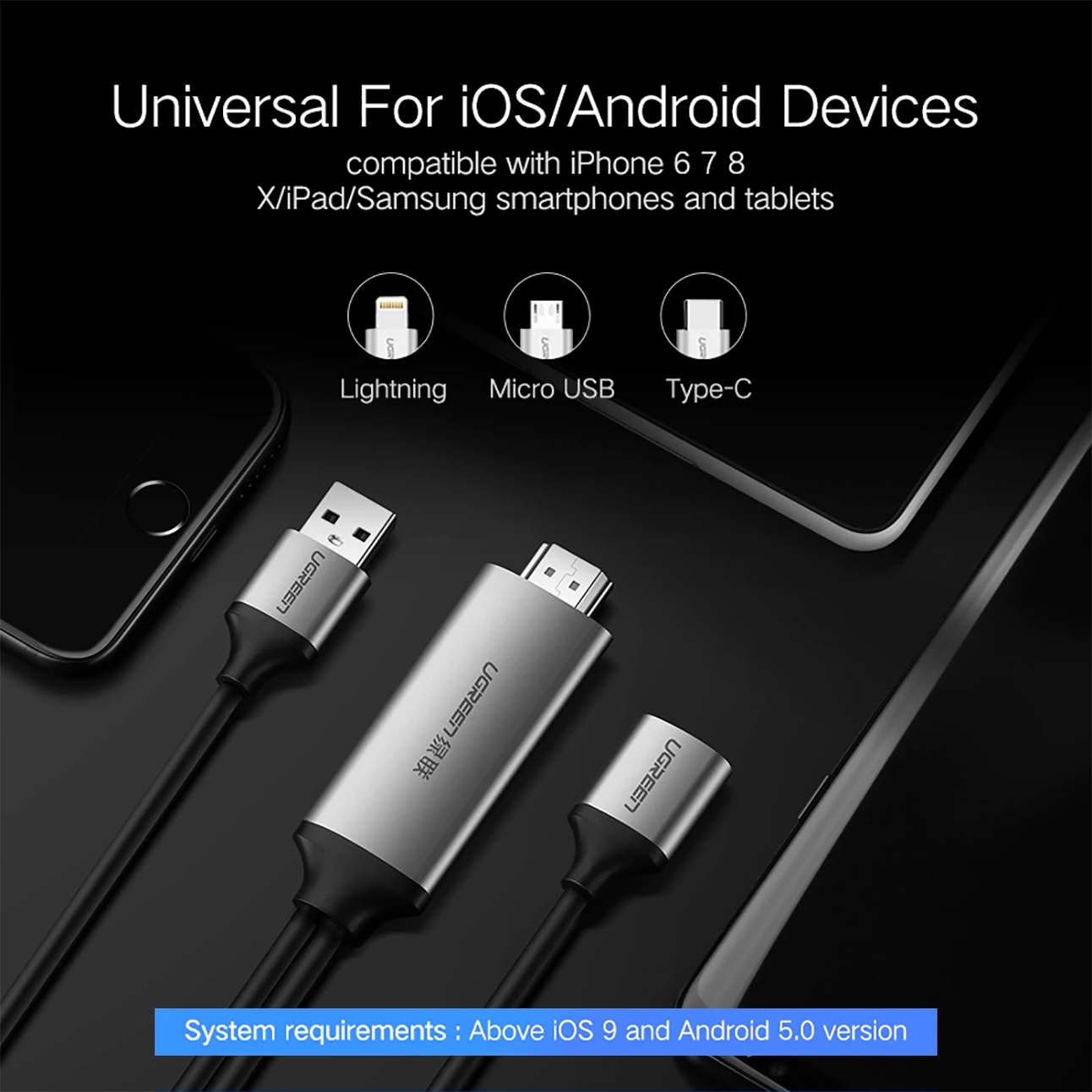 Cáp kết nối điện thoại, máy tính bảng với màn hình tivi Ugreen 50291 có khả năng tương thích rộng hỗ trợ các thiết bị sử dụng hệ điều hành iOS 9.0 và Android 5.0 trở lên, không đòi hỏi cấu hình máy và cho ra hình ảnh ở độ phân giải cao lên đến 1920x1080p@60Hz, thiết kế cáp sang trọng tinh tế với lớp vỏ hợp kim nhôm bền bỉ, chất liệu lõi đồng nguyên chất. Ugreen 50291 thực sự là phụ kiện đồ chơi công nghệ cao cấp không thể thiếu trong bộ sưu tập của bạn.