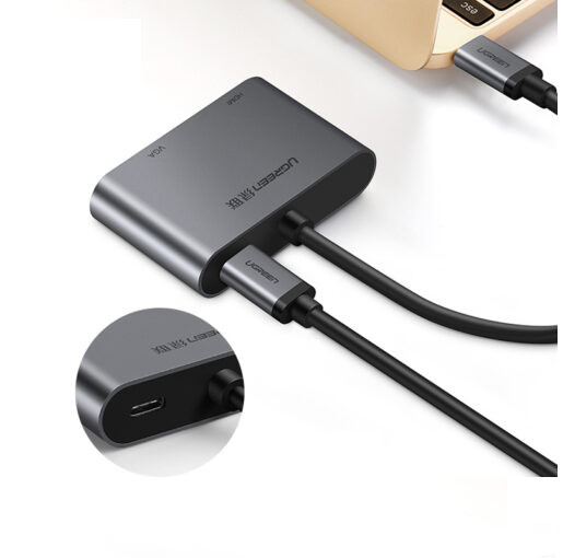 Cáp chuyển USB Type-C to HDMI/VGA/Sạc PD 4K30Hz Ugreen 50505 là phụ kiện giúp bạn kết nối Macbook, laptop cổng USB-C của bạn với màn hình, máy chiếu, TV qua cổng kết nốiHDMI và VGA. Hỗ trợ độ phân giải cao 4K*2K@30Hz cổng HDMI và FullHD 1920*1080@60Hz cho cổng VGA, giải pháp lý tưởng cho các nhu cầu làm việc, học tập, giải trí… Hỗ trợ cổng cấp nguồn sạc USB-C PD Power giúp vừa sử dụng vừa sạc.