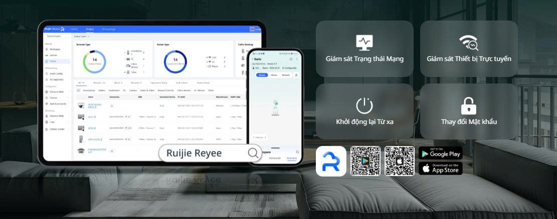 Ứng dụng Ruijie Reyee cung cấp các tính năng nâng cao đáng kinh ngạc,