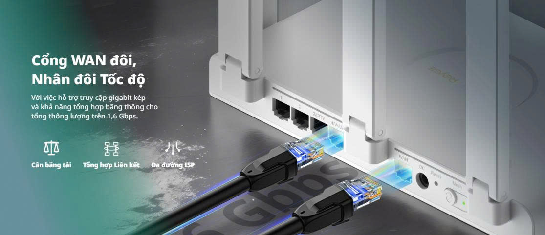 Bộ định tuyến Gigabit WAN kép 3000M Wi-Fi 6 Ruijie Reyee RG-EW3000GX