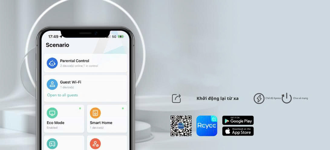 Thiết lập mạng gia đình của bạn bằng ứng dụng Reyee Router chỉ trong hai phút Nhiều tính năng Miễn phí trọn đời đang chờ bạn Khám phá, Trải nghiệm, Mong đợi.