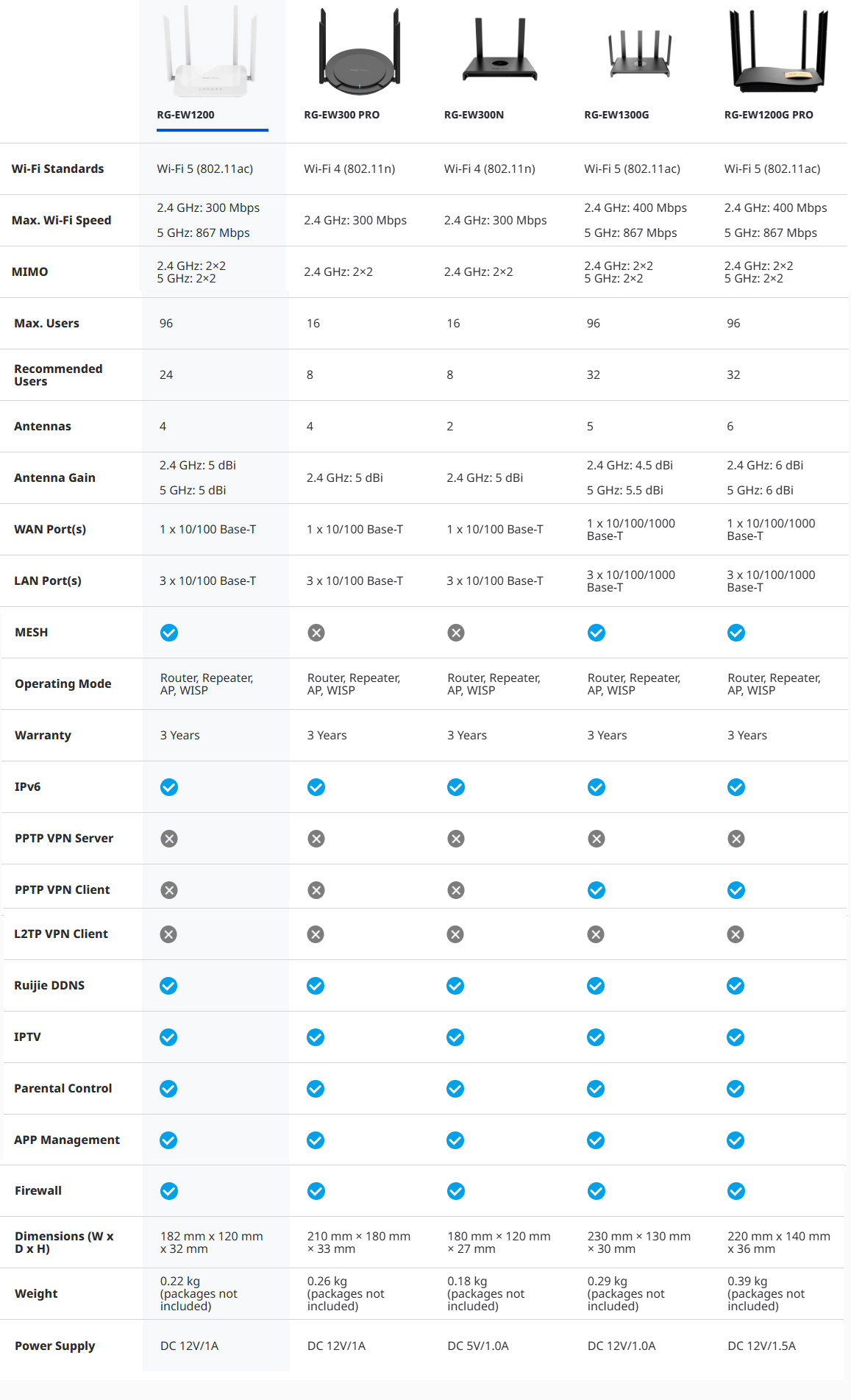 Bộ phát WiFi Ruijie RG-EW300 PRO là dòng sản phẩm có thiết kế phù hợp với cá nhân hoặc hộ gia đình. Thiết bị có hỗ trợ 1 băng tần 2.4GHz, tín hiệu mạnh hơn với ăng-ten 4×5 dBi. Thiết bị còn có thể làm việc với công nghệ Reyee Router độc đáo. Loại bỏ được hoàn toàn những trở ngại về cấu hình hay cài đặt do nhiều thiết lập mạng.