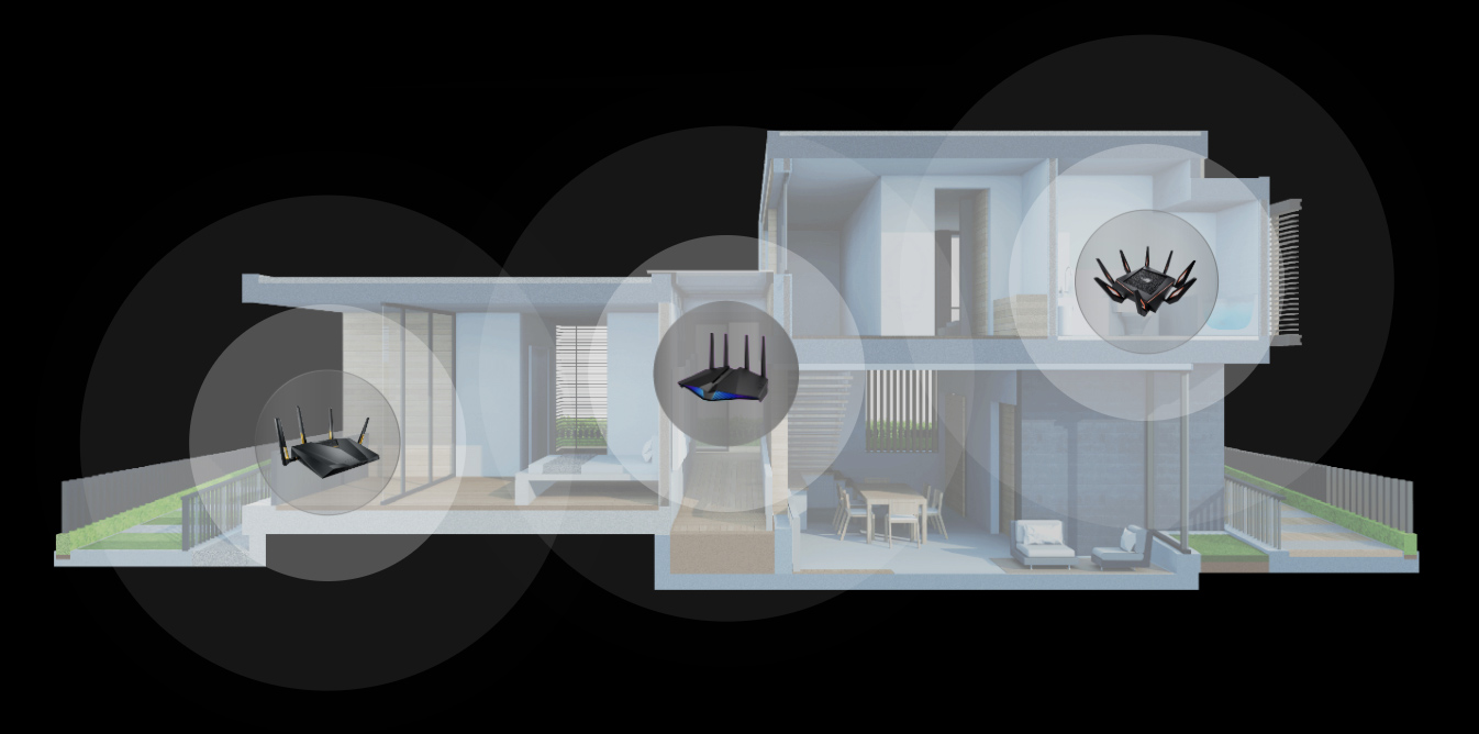 Bộ định tuyến của bạn vẫn không thể phát sóng đến các điểm chết không có WiFi? RT-AX82U hỗ trợ ASUS AiMesh, một công nghệ lưới mạng độc đáo phủ sóng mạng toàn bộ ngôi nhà bằng nhiều bộ định tuyến ASUS. Với tính năng kiểm soát tập trung dễ dàng và chuyển vùng liền mạch, không cần phải là chuyên gia bạn cũng có thể thiết lập nó với bất kỳ bộ định tuyến nào tương thích với AiMesh mà bạn có. Giờ thì chào tạm biệt những vùng chết WiFi thôi nào!