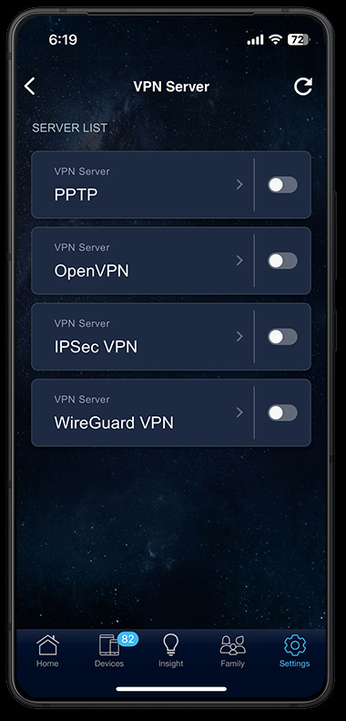 Router ASUS hỗ trợ nhiều giao thức VPN khác nhau, bao gồm cả WireGuard® mới nhất cho nhiều tình huống khác nhau.