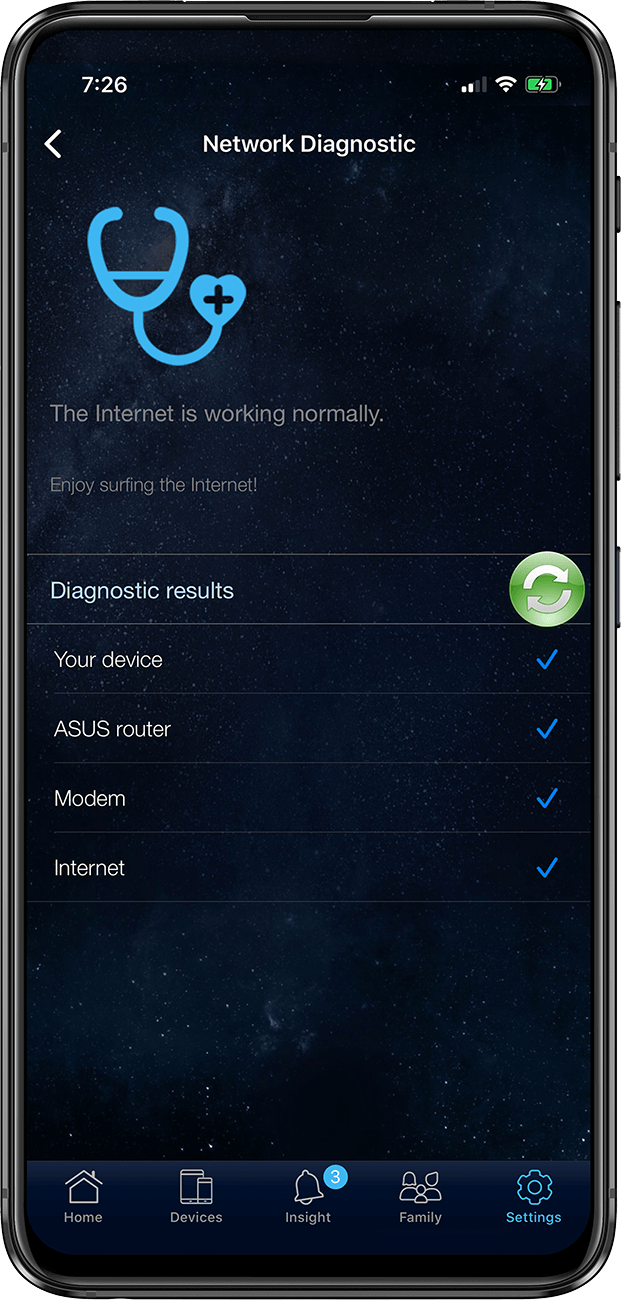 một thao tác chạm trên ứng dụng ASUS Router.