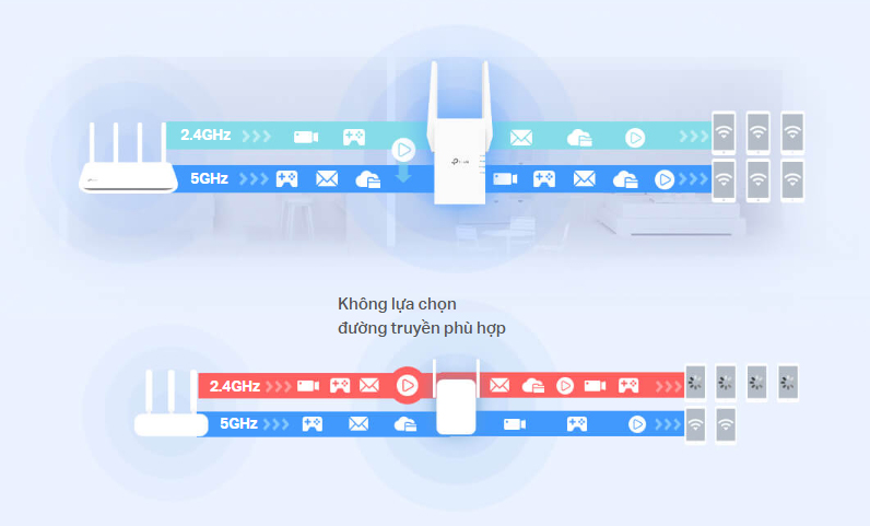 - Lựa chọn đường dẫn phù hợp: Tự động chọn đường dẫn kết nối nhanh nhất tới Router.