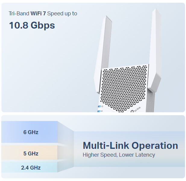 △Việc sử dụng Wi-Fi 7 (802.11be), Wi-Fi 6 (802.11ax) và các tính năng bao gồm Hoạt động đa liên kết (MLO), Băng thông 320 MHz, 4K-QAM, Multi-RU, OFDMA và MU-MIMO yêu cầu máy khách cũng phải hỗ trợ các tính năng tương ứng. Băng thông 320 MHz chỉ khả dụng trên băng tần 6 GHz. Đồng thời, băng thông 320 MHz trên băng tần 6 GHz và băng thông 160 MHz trên băng tần 5 GHz có thể không khả dụng ở một số khu vực/quốc gia do các hạn chế về quy định. Độ rộng và tốc độ kênh đôi đề cập đến 320 MHz so với 160 MHz đối với bộ mở rộng phạm vi Wi-Fi 6.