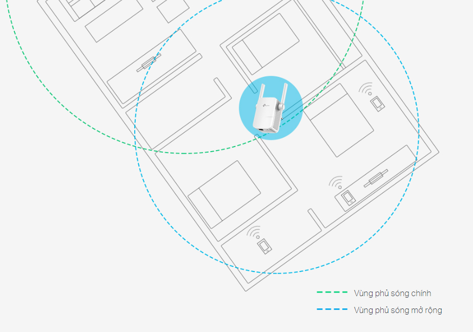 TL-WA855RE hoạt động như một bộ lặp sóng giúp bạn tránh khỏi tình trạng tín hiệu yếu bằng cách mở rộng vùng phủ sóng router của bạn đến những "vùng chết" của Wi-Fi.