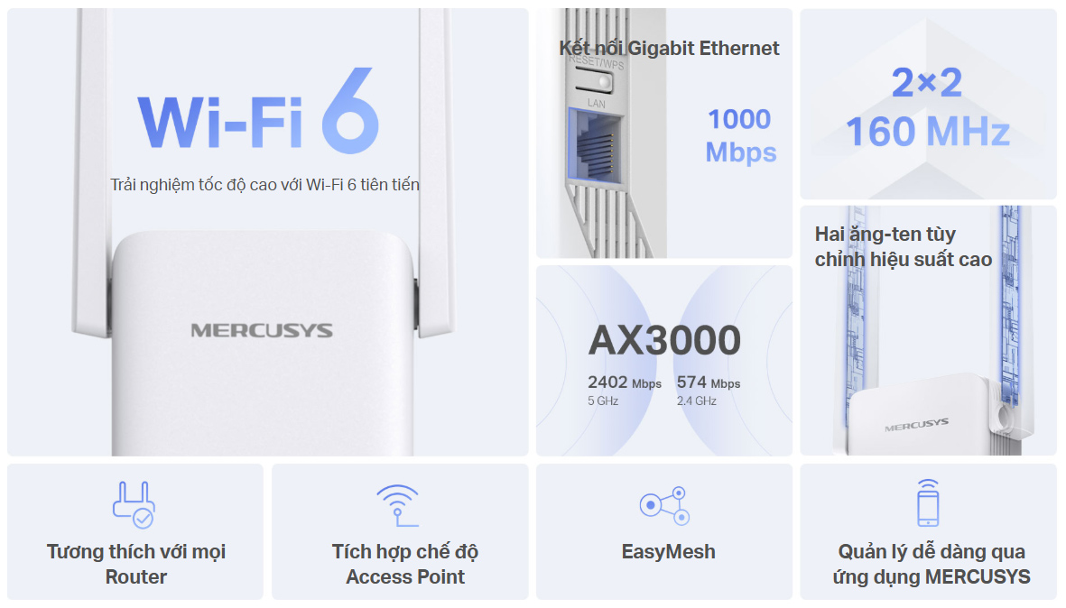 Bộ Mở Rộng Sóng WiFi 6 Mercusys ME80X AX3000