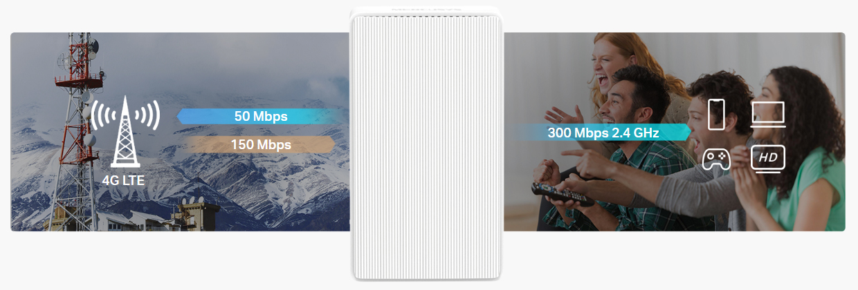 Tải lên Mbps. Nó cũng có thể chia sẻ mạng Wi-Fi với tốc độ tối đa 300 Mbps trên 2,4 GHz để chơi game, phát trực tuyến và hơn thế nữa.