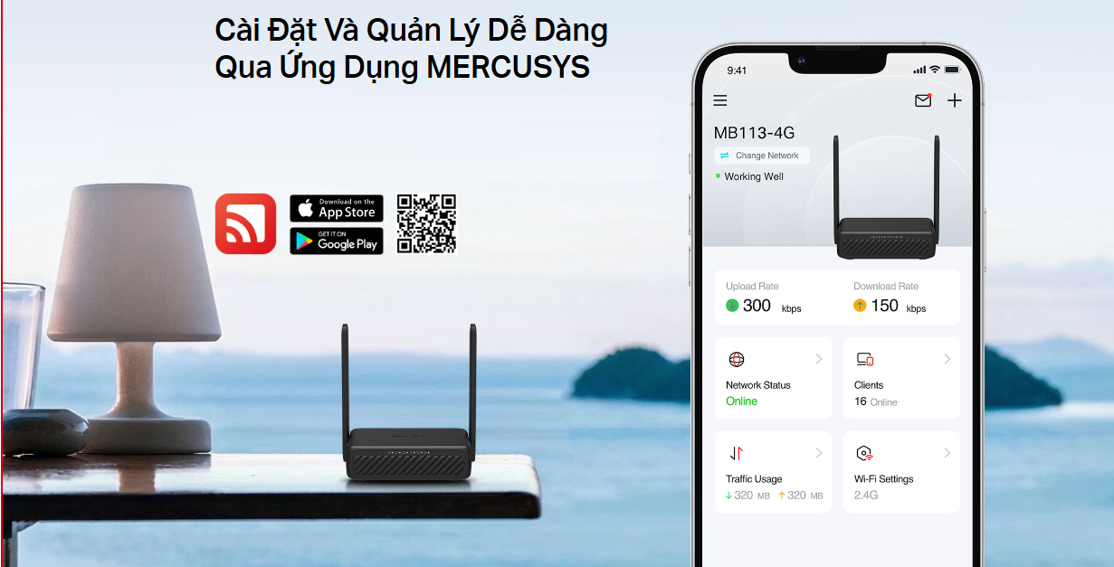 Cài đặt và quản lý Wi-Fi của bạn thông qua ứng dụng MERCUSYS từ điện thoại thông minh (Android, iOS).