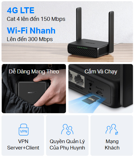 Router Wi-Fi 4G LTE Di Động Tốc Độ 300 Mbps - MB113-4G