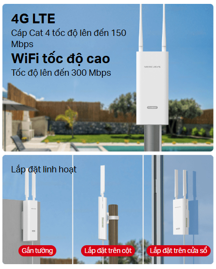 Router 4G LTE Không Dây Chuẩn N Tốc Độ 300 Mbps dùng trong nhà / ngoài trời