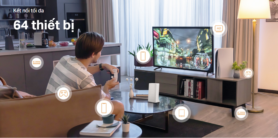 - Kết nối đồng thời – Chia sẻ internet với tối đa 64 thiết bị WiFi.