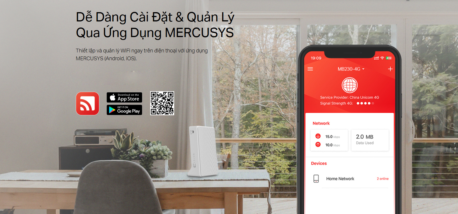 MB230-4G hỗ trợ 4G+ Cat 6 với công nghệ Ghép Tần Số (Carrier Aggregation), cho tốc độ tải xuống LTE lên đến 300 Mbps và tải lên 50 Mbps. Đồng thời chia sẻ mạng WiFi băng tần kép, lý tưởng cho chơi game, xem phim trực tuyến và nhiều hơn thế.
