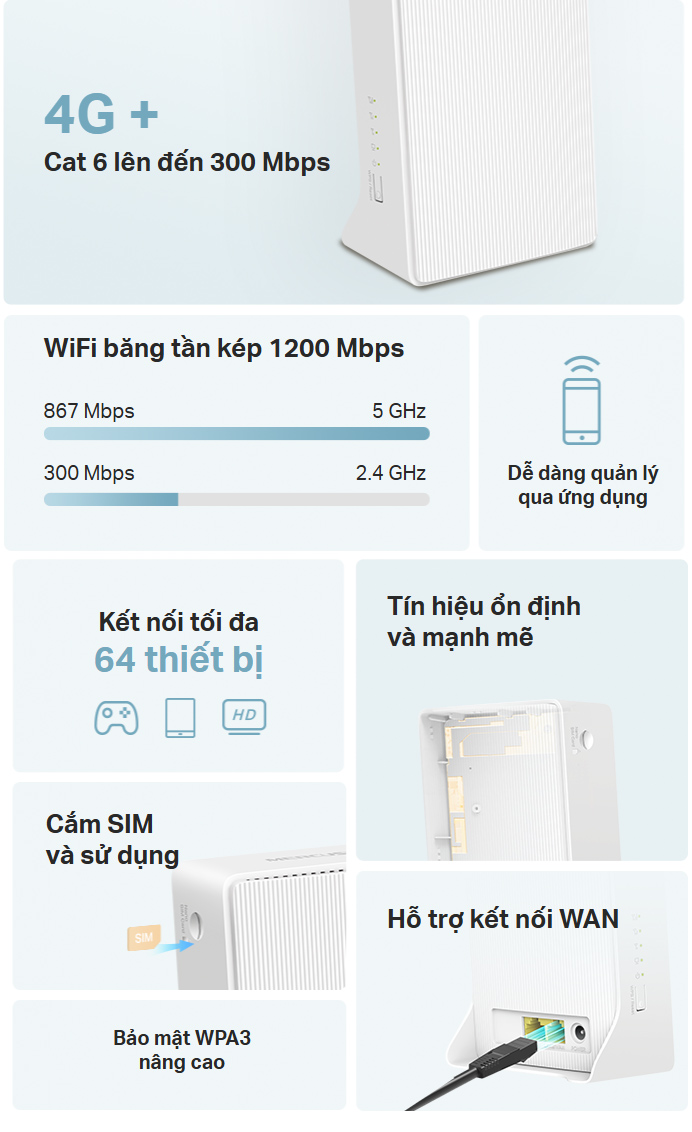 Router 4G+ Cat6 AC1200 Gigabit Băng Tần Kép - MB230-4G